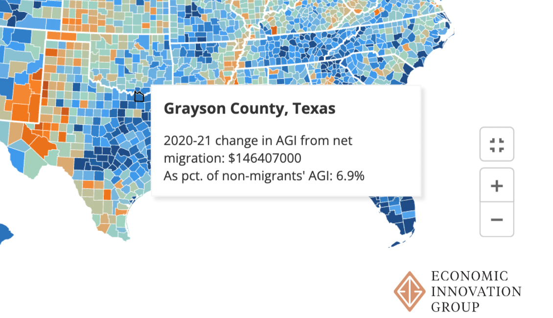 In 2020-2021 Grayson County netted 1,422 more tax payers. The average income of those that left was $56K, while the average income of those that came to Grayson County was $69K. The article below entitled “Tax Data Reveals Large Flight of High Earners from Major Cities During the Pandemic” further explains the trend:
