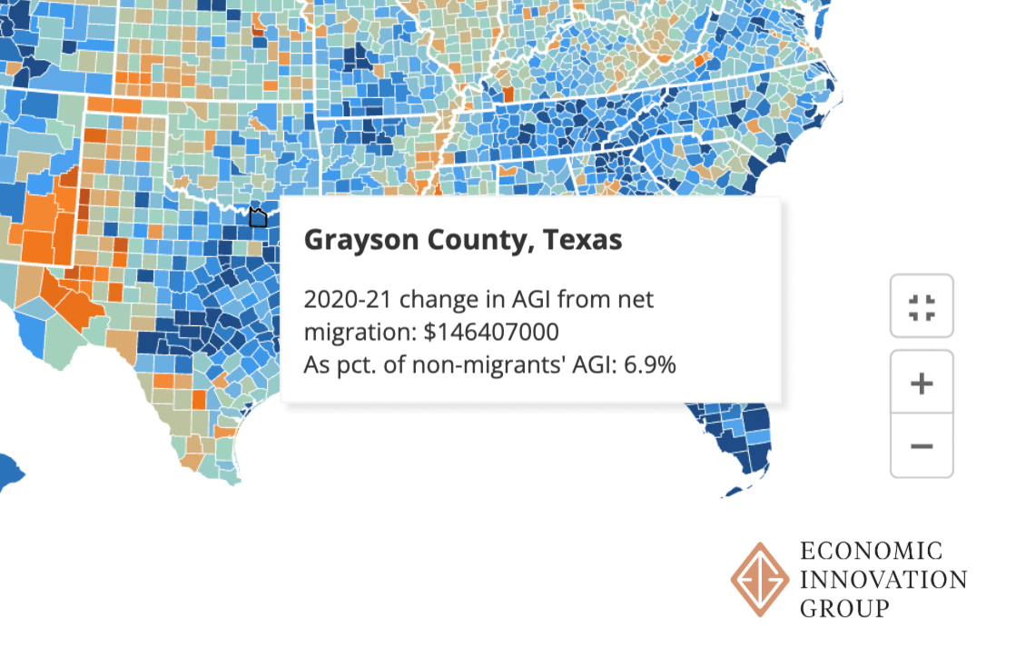 • Geographically, pandemic growth regions like Florida, East Texas, the Southern Triangle, and broad swathes of the Mountain West saw large inflows of income, coinciding with rapid post-pandemic population growth.